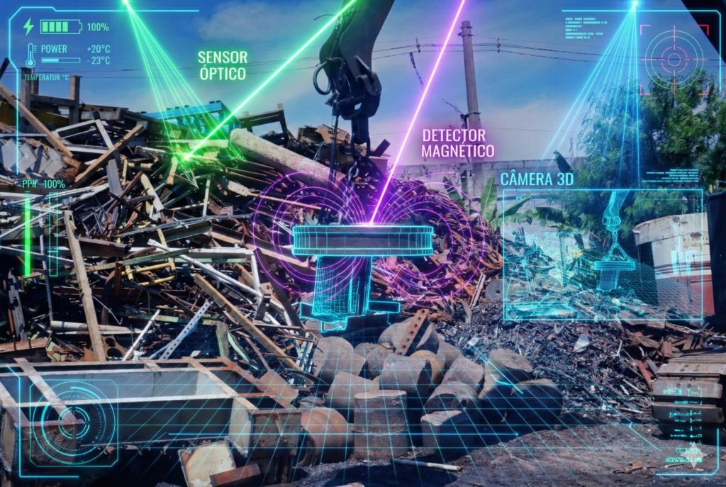 Nos grandes centros de reciclagem do mundo, a inteligência artificial já está sendo usada para identificar, classificar e separar metais com altíssima precisão. Nesse sentido, sensores ópticos, detectores magnéticos e câmeras 3D reconhecem o tipo de liga metálica em segundos, o que substitui parte do trabalho manual.